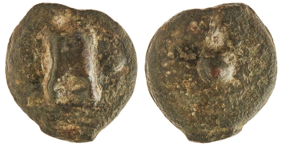 Roman Republic. Anonymous, ca. 280 BC. AE Aes Grave Uncia. Rome. 25.7 gms. Knucklebone, single pellet (mark of value) above, rev. Raised pellet (mark of value). Crawford 14/6, ICC 31, HN Italy 273. Deep olive-green patina. Very Fine.