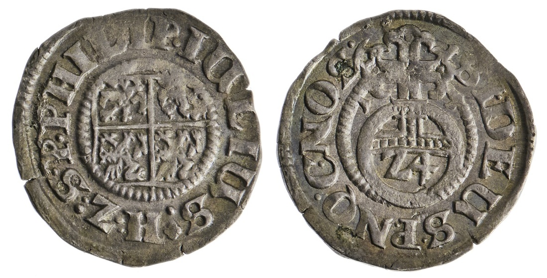 German States. Pomerania-Wolgast. Philip Julius (1592-1625). 1/24 Taler, 1611. Arms within beaded circle, rev. Orb with value within beaded circle. KM 7. Pearly lavender-gray. Choice Extremely Fine.