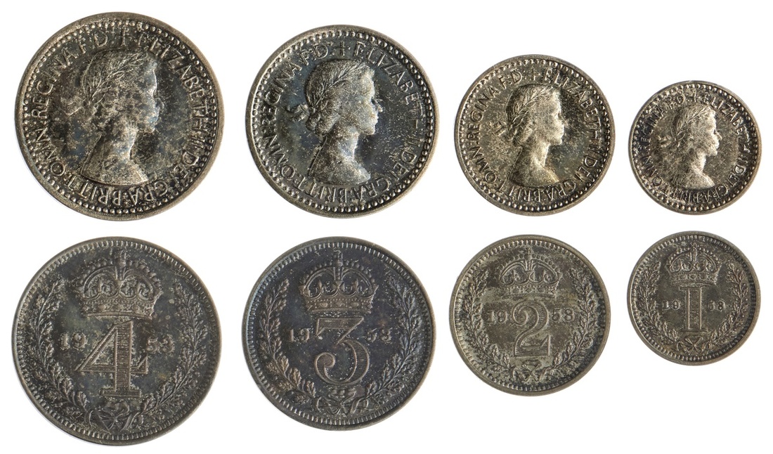 Great Britain. Elizabeth II (1953-). Coronation Maundy Set, 1953. St. Paul's Cathedral. Penny-Fourpence. S.4126, KM MDS 212. Rare. Attractively toned. Prooflike Brilliant Uncirculated.