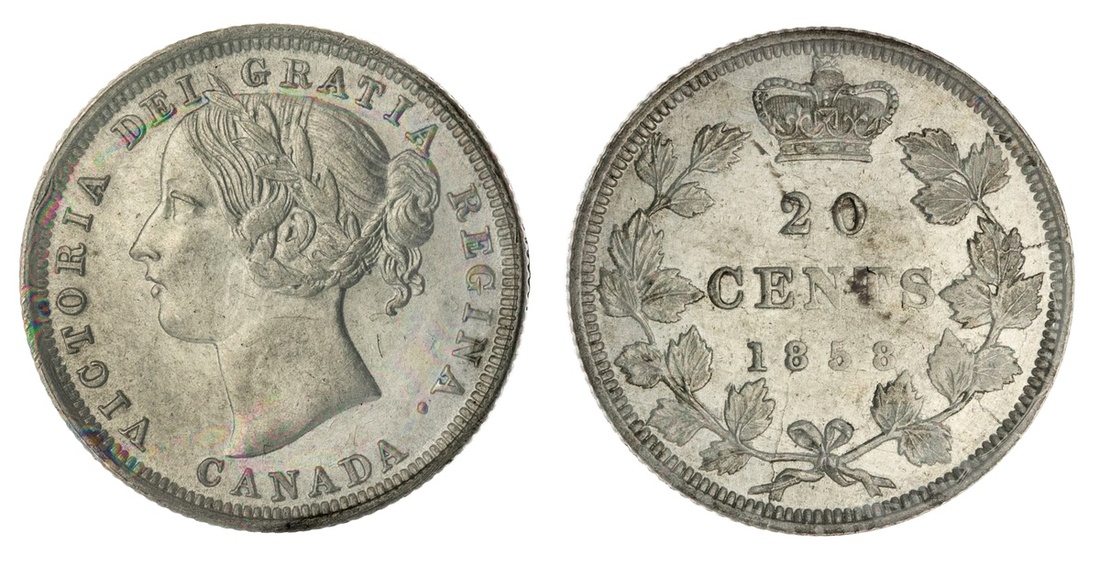 Canada. Province. Victoria (1837-1901). 20 Cents, 1858. Wreathed head left. KM 4. ICCS AU-50.