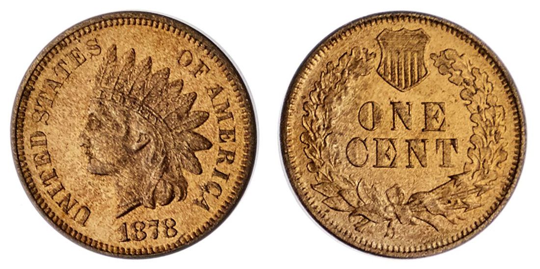 1878 Indian Head Cent. P/L Unc. Details, but hazing residue from storage.
