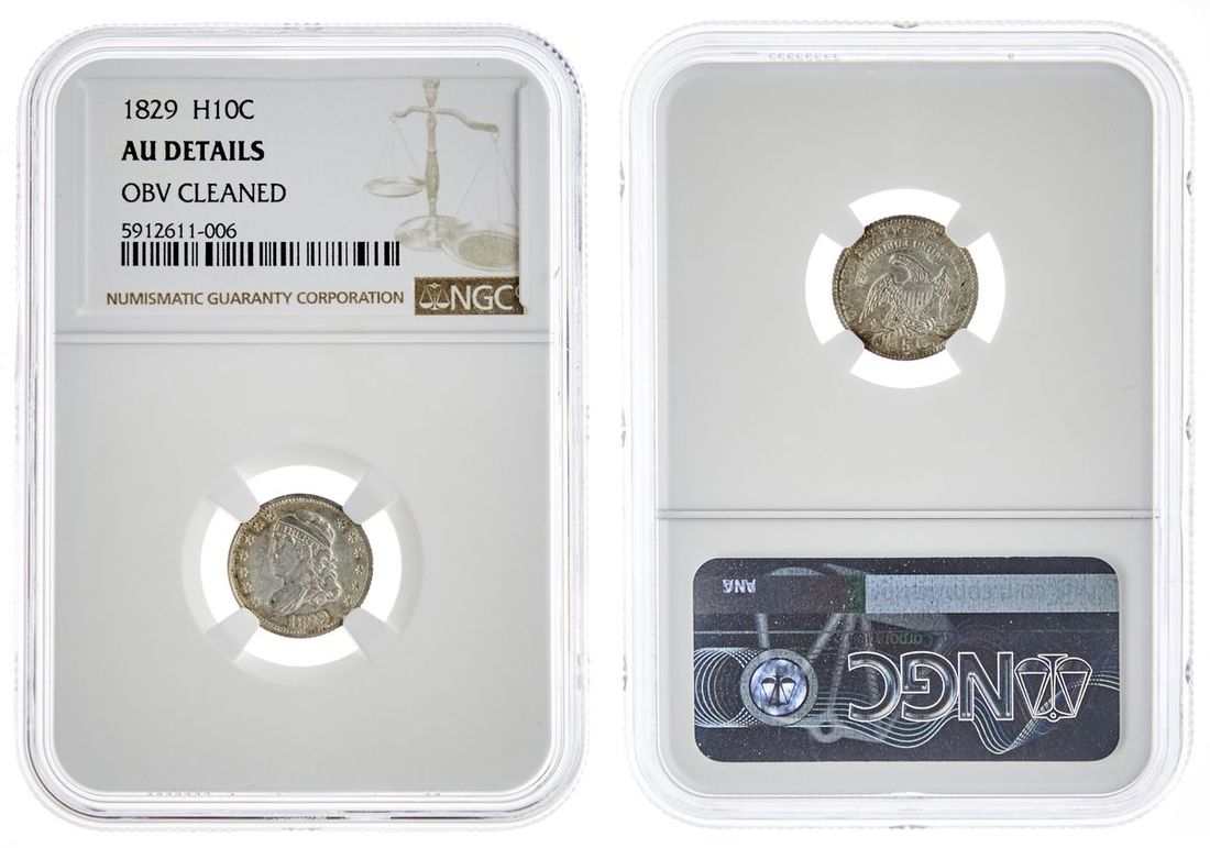 1829 Capped Bust Half Dime. NGC AU Details - obv. Cleaned.