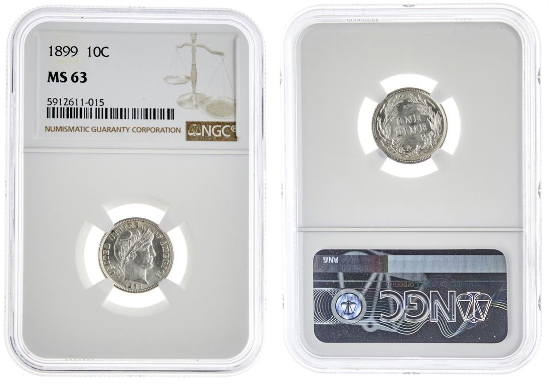 1899 Barber Dime. NGC MS 63.