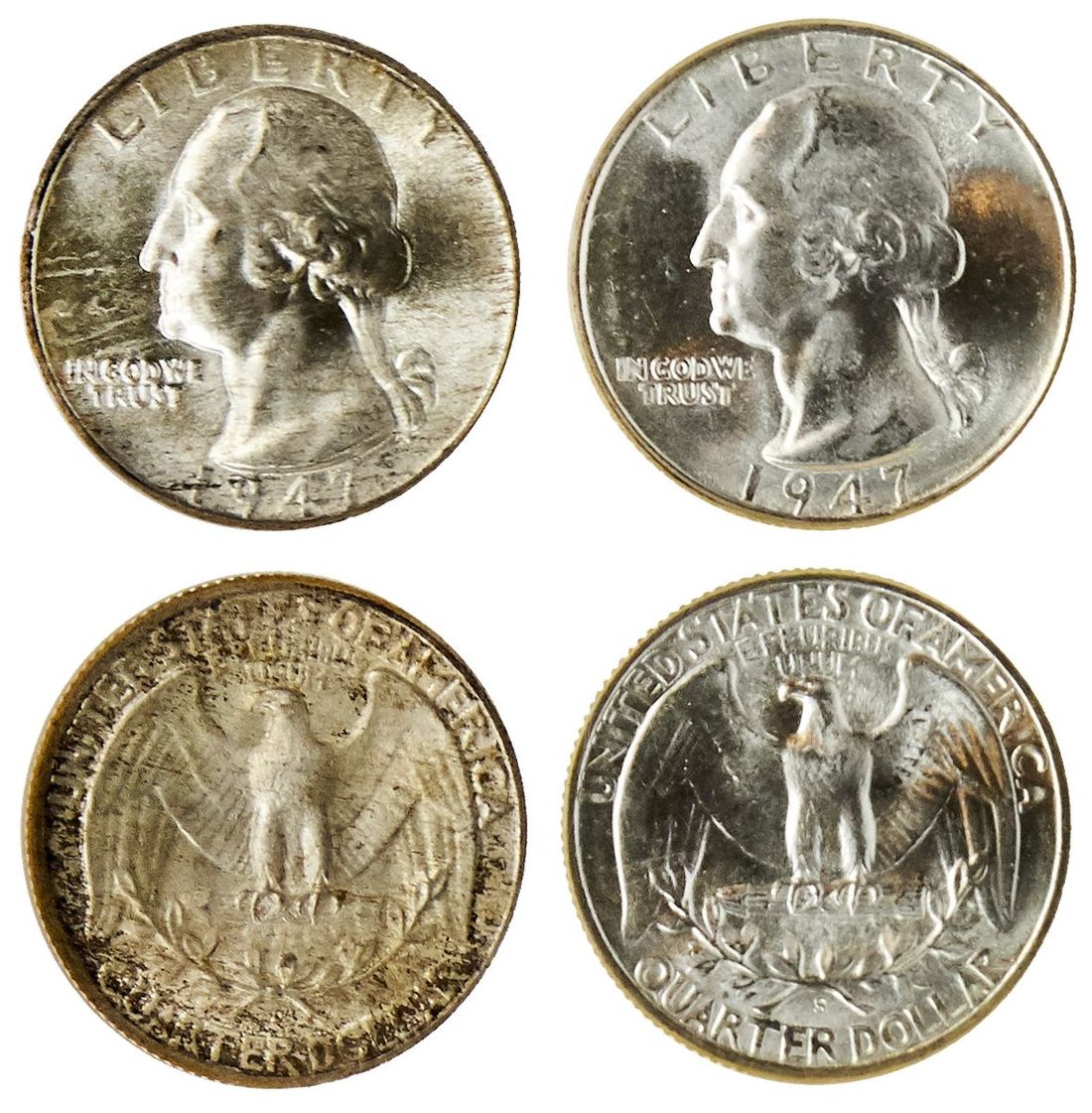 1947-D and S Washington Quarters. Both NGC MS 67. (2)