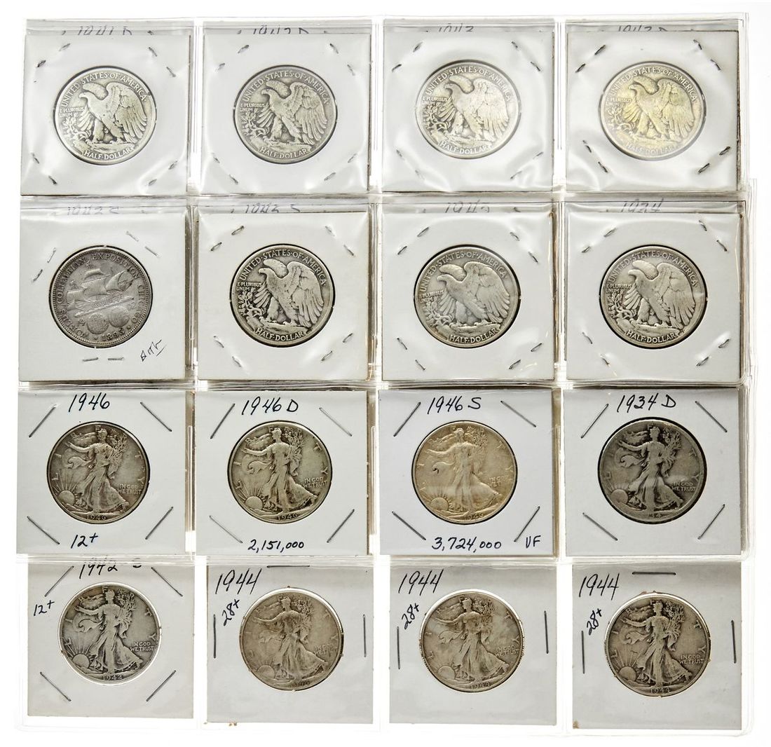 Lot of Walking Liberty Half Dollars (35). Mostly 1930s-1940s, but a few earlier. Good-VF; also Columbian Halves, 1892, 1893 (2). About VF-EF. (38)