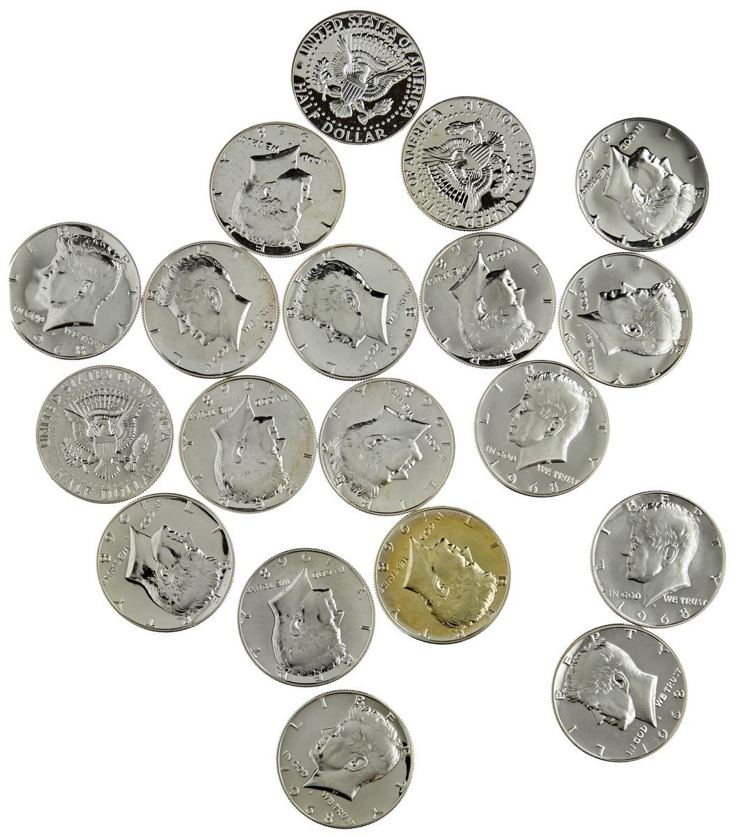 Roll of Proof 1969-S JFK Half Dollars and 1968-S JFK Halves (19) . Choice Brilliant Proof. (39)