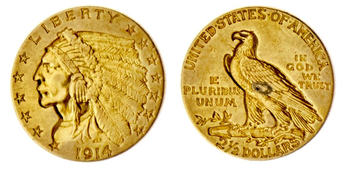 1914 $2 ½ Indian. Mount mark reverse center. EF Details.
