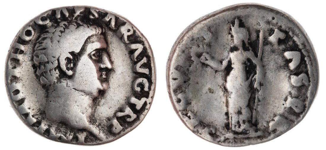 Roman Imperial. Otho (69). AR Denarius, struck 15 January-8 March, 69. 3.59 gm. Bare head right, rev. Securitas standing left holding wreath and scepter. RIC 8. Numerous cleaning marks. Fine.