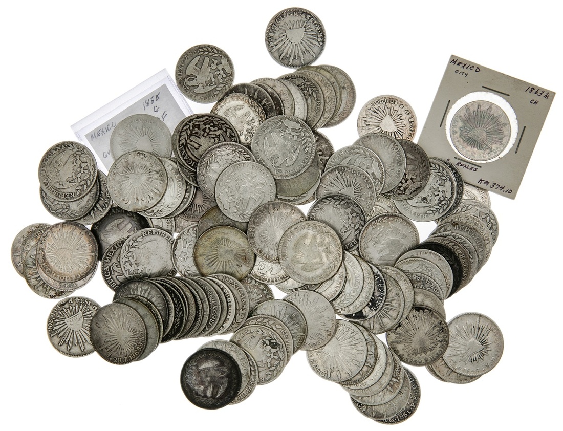 Mexico. Republica. Large lot of Cap 'n Ray 2 Reales, 1820's-1860's. A few a bit better, mostly Guanajuato, Zacatecas and Mexico City, but a few other mints. Good-VF. (119)