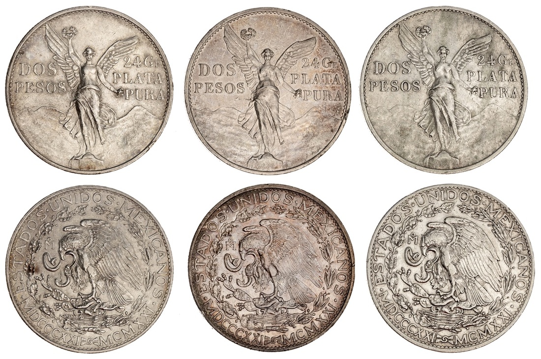 Mexico. Estados Unidos. Trio of Centenario 2 Pesos, 1921. Winged Victory. KM 462. Extremely Fine. (3)