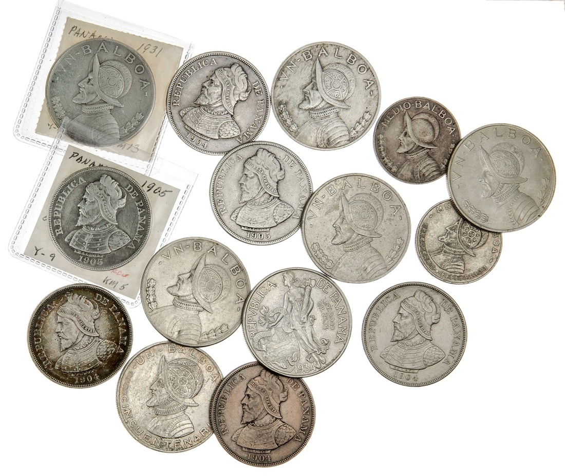 Panama. Group of Crowns: 50 Centesimos, 1904 (4), 1905 (2); Balboas, 1931 (2), 1934, 1947 (2), 1953 and 1966; also ½ Balboas, 1930, 1961. Some once cleaned or wiped. VF-AU. (15)