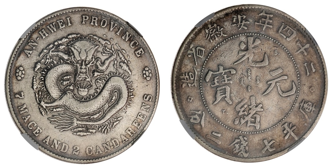 China. Imperial. Anhwei Province. Dollar, year 24 (1898). Dragon; A.S.T.C. in field. L&M 199, Y.45.3. NGC XF Details, cleaned.