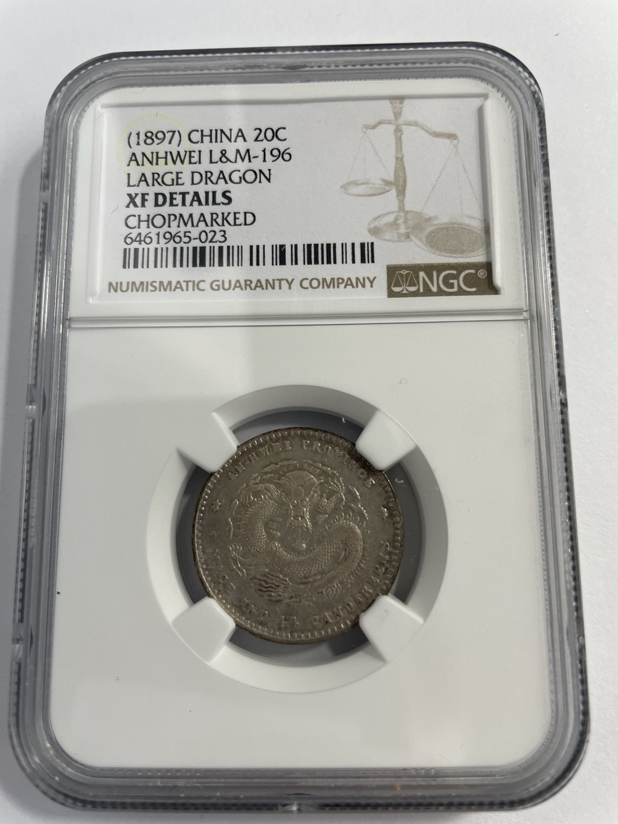 China. Imperial. Anhwei Province 20 Cents, nd (1897). Large dragon. Y.43, L&M 196. NGC XF Details, chopmarked. Toned. Single, tiny test "X".