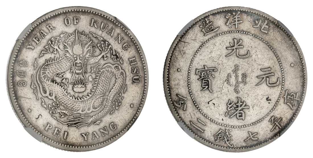 China. Imperial. Chihli Province. Dollar, year 24 (1898). Pei Yang Arsenal Mint. Dragon, crosslet "4" in date. L&M 466, Y.73.4. NGC XF Details, chopmarked, cleaned (two tiny, innocuous chops reverse field).