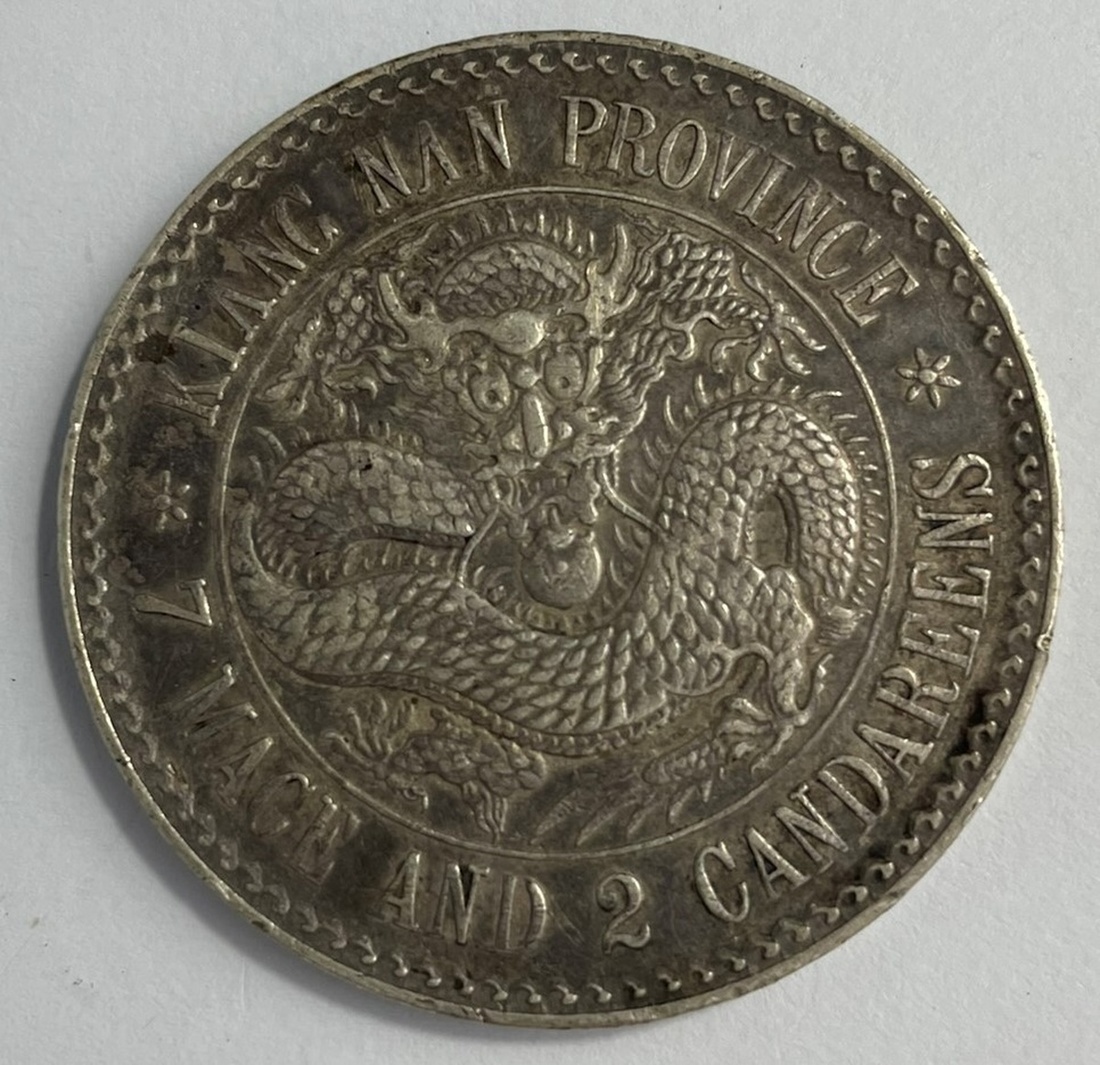 China. Imperial. Kiangnan Province. Dollar, nd (1897). Herringbone edge. Dragon within circle. L&M 210A. Small rim nick and a few scratches legend side periphery. Once cleaned then gray darkened. Two small chopmarks legend side. Extremely Fine Details.