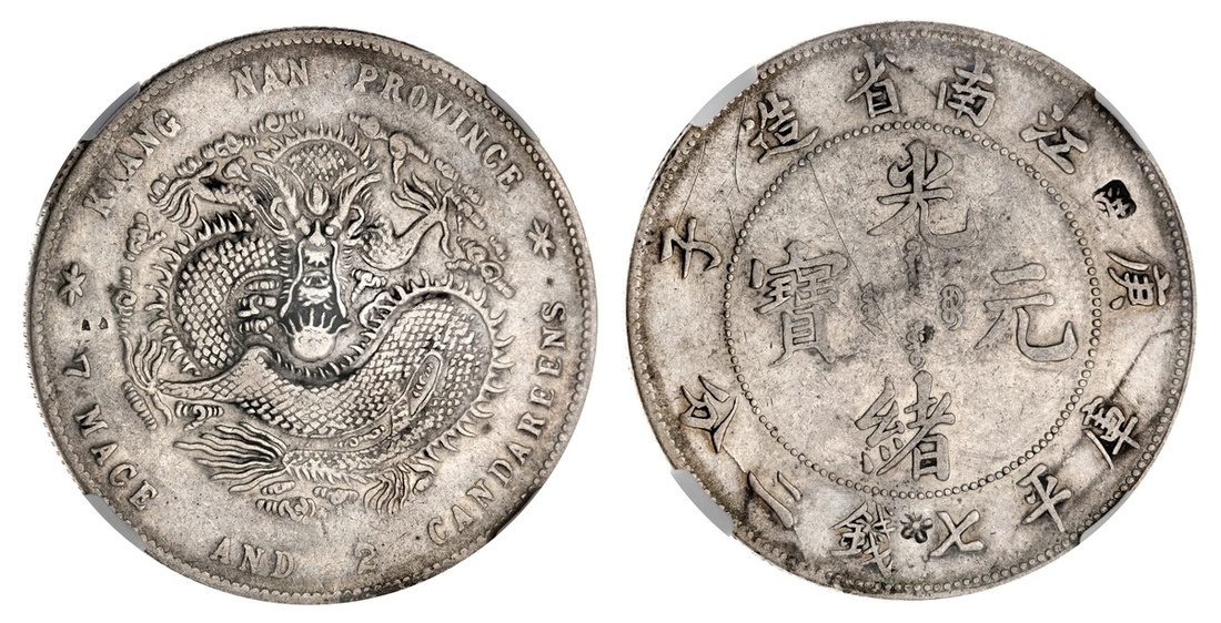 China. Imperial. Kiangnan Province. Dollar, 1900. Dragon. L&M 229, Y.145a.4. NGC XF Details, chopmarked, cleaned. A few tiny chops either side with some graffiti legend side.