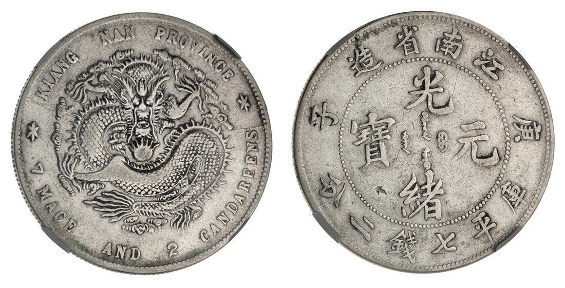 China. Imperial. Kiangnan Province. Dollar, 1900. Dragon. L&M 229, Y.145a.4. NGC XF Details, chopmarked, cleaned. Tiny chop legend side.