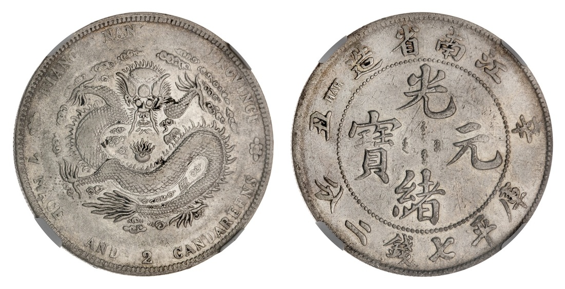China. Imperial. Kiangnan Province. Dollar, 1901. Dot-eyed dragon; bold HAH. L&M 244, Y.145a.6. NGC AU Details, cleaned. Now toning.