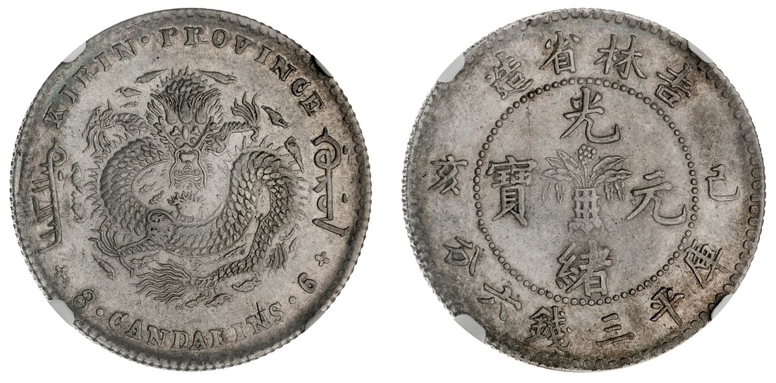 China. Imperial. Kirin Province. 50 Cents, 1899. Dragon; flower vase at center. L&M 522, Y.182.3. NGC AU Details, cleaned. Has lightly toned.