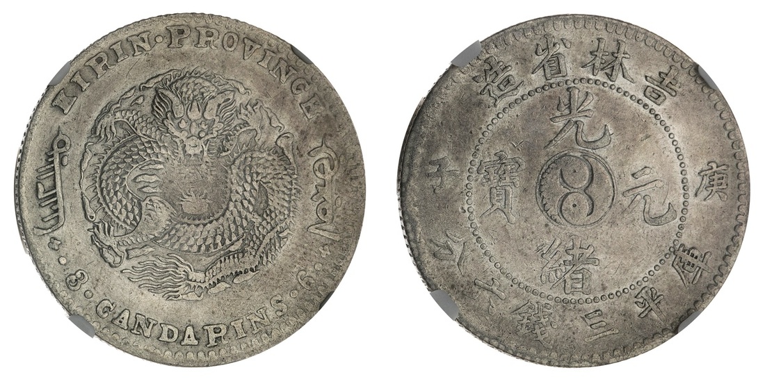 China. Imperial. Kirin Province. 50 Cents, 1900. Dragon; figure "8" yin-yang at center. L&M 527, Y.182a. NGC AU Details, cleaned. Has retoned.