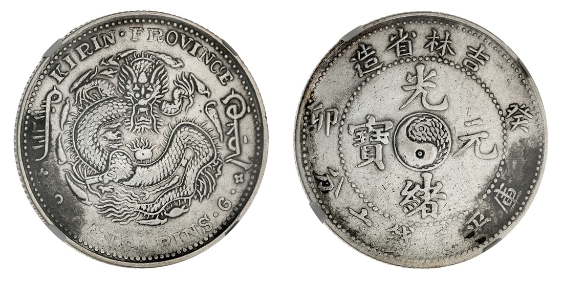 China. Imperial. Kirin Province. 50 Cents, 1903. Dragon; yin-yang at center. L&M 548, Y.182a.1. NGC AU Details, harshly cleaned. Has retoned, an attractive even pale slate gray.