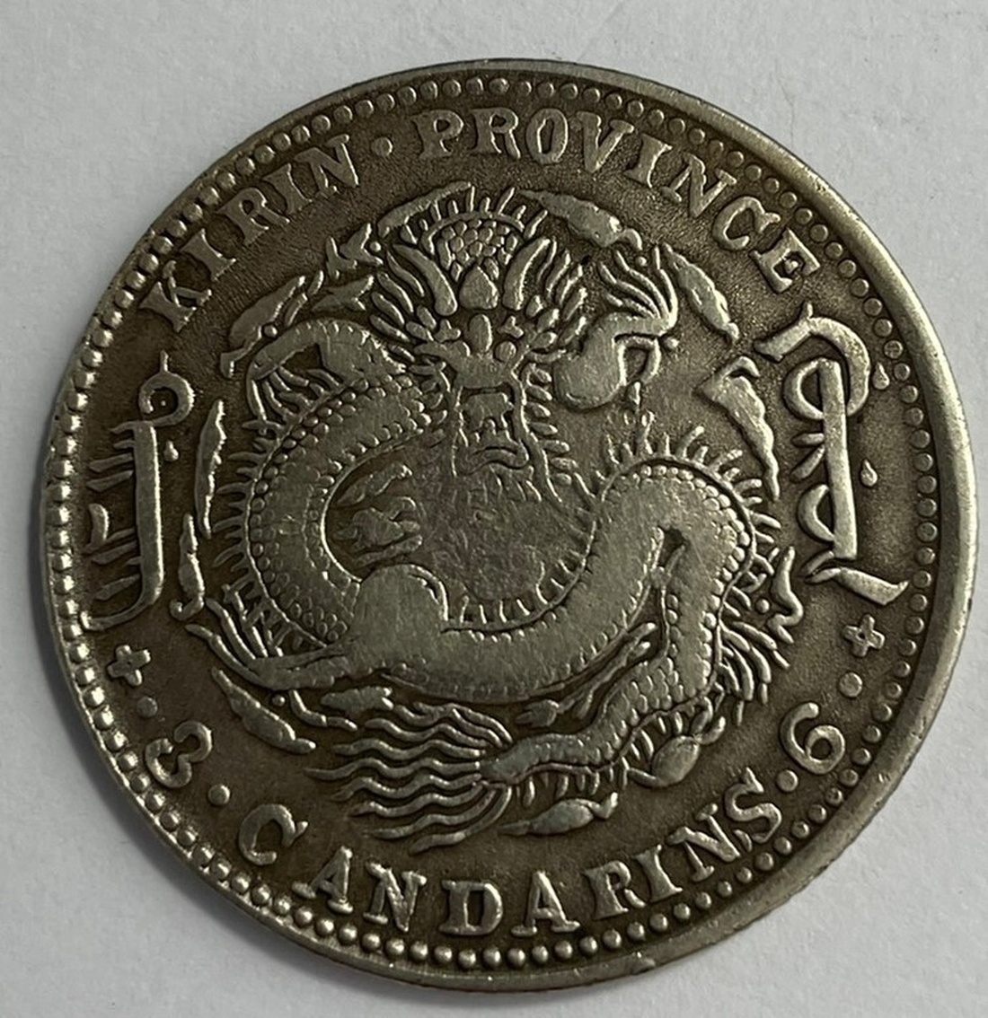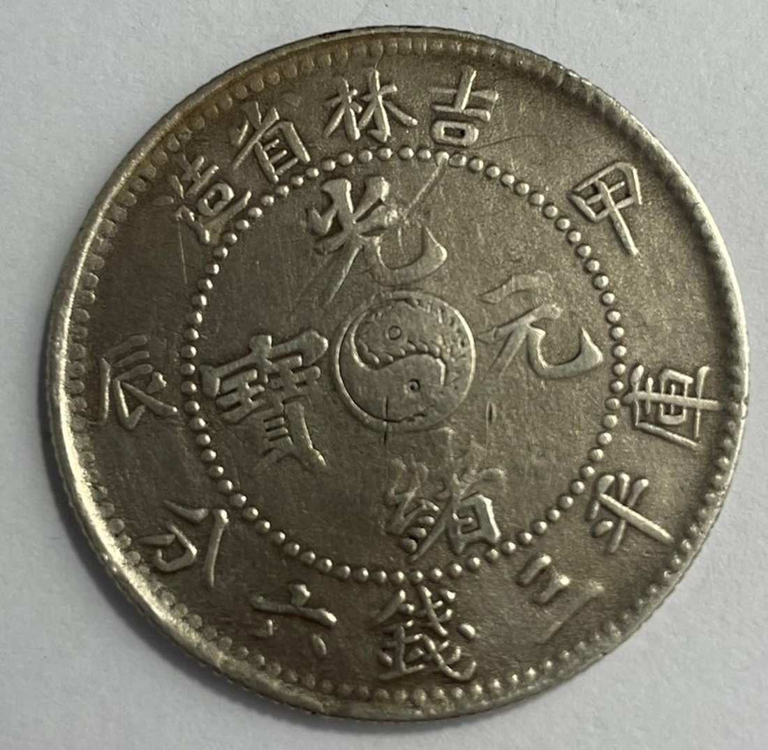 China. Imperial. Kirin Province. 50 Cents, 1904. Dragon; yin-yang at center. Y.182a.1, L&M 553. Harshly cleaned and treated. Very Fine Details.