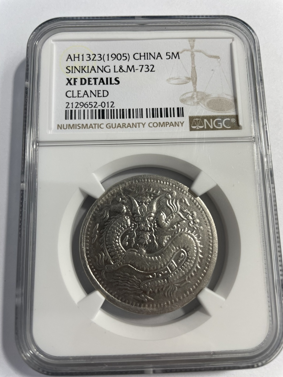 China. Imperial. Xinjiang Province (Sinkiang). 5 Miscals, Kashgar AH 1323 (1905). Large dragon; Date upper left as "1/32/3". Y.21, L&M 731. NGC XF Details, cleaned.