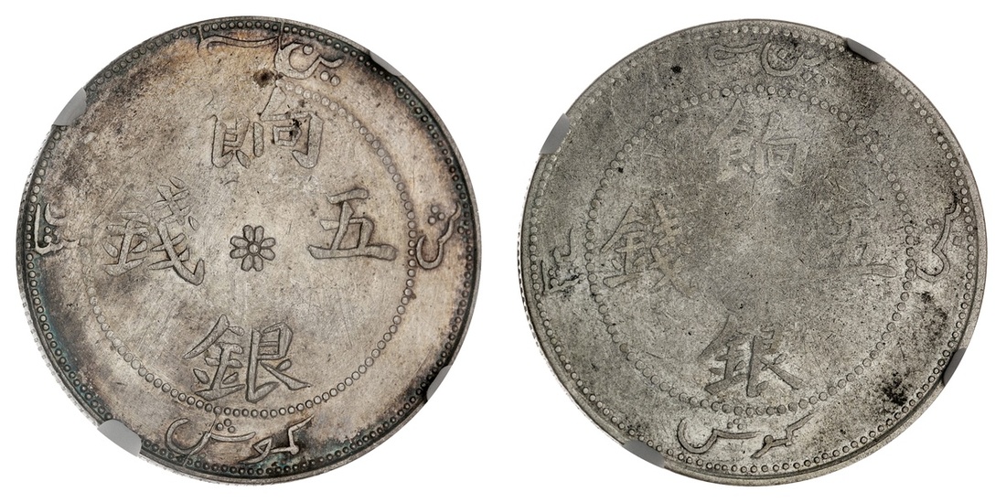 China. Imperial. Xinjiang Province (Sinkiang). 5 Miscals, nd (1910). Uncircled dragon. L&M 820, Y.6. NGC VF 30.