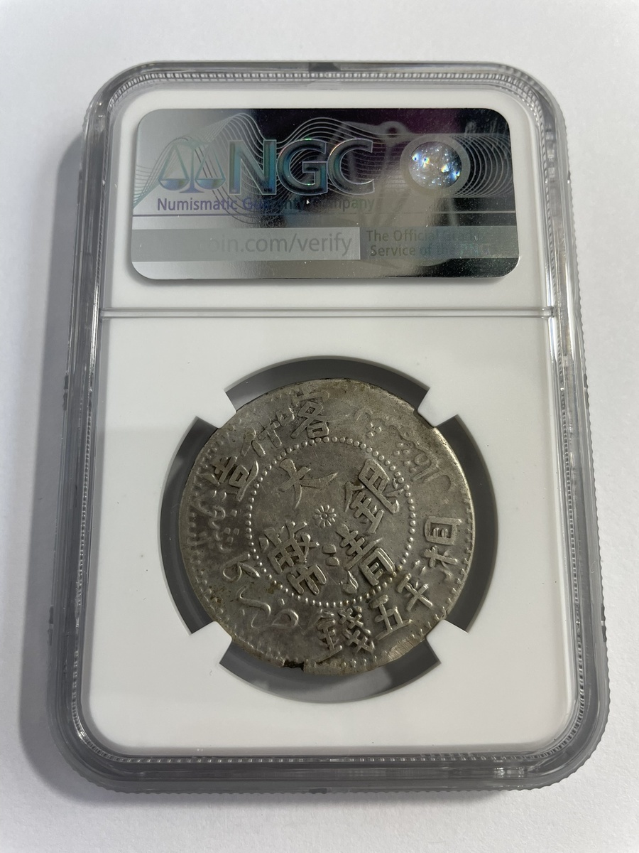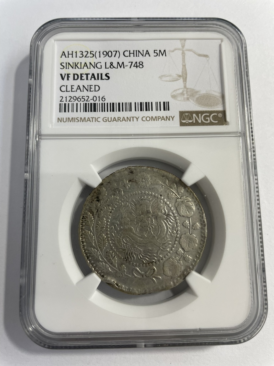 China. Imperial. Xinjiang Province (Sinkiang). 5 Miscals, nd (1910). Auspicious bat above uncircled dragon. Y.6.7, L&M 817. NGC VF Details, harshly cleaned.