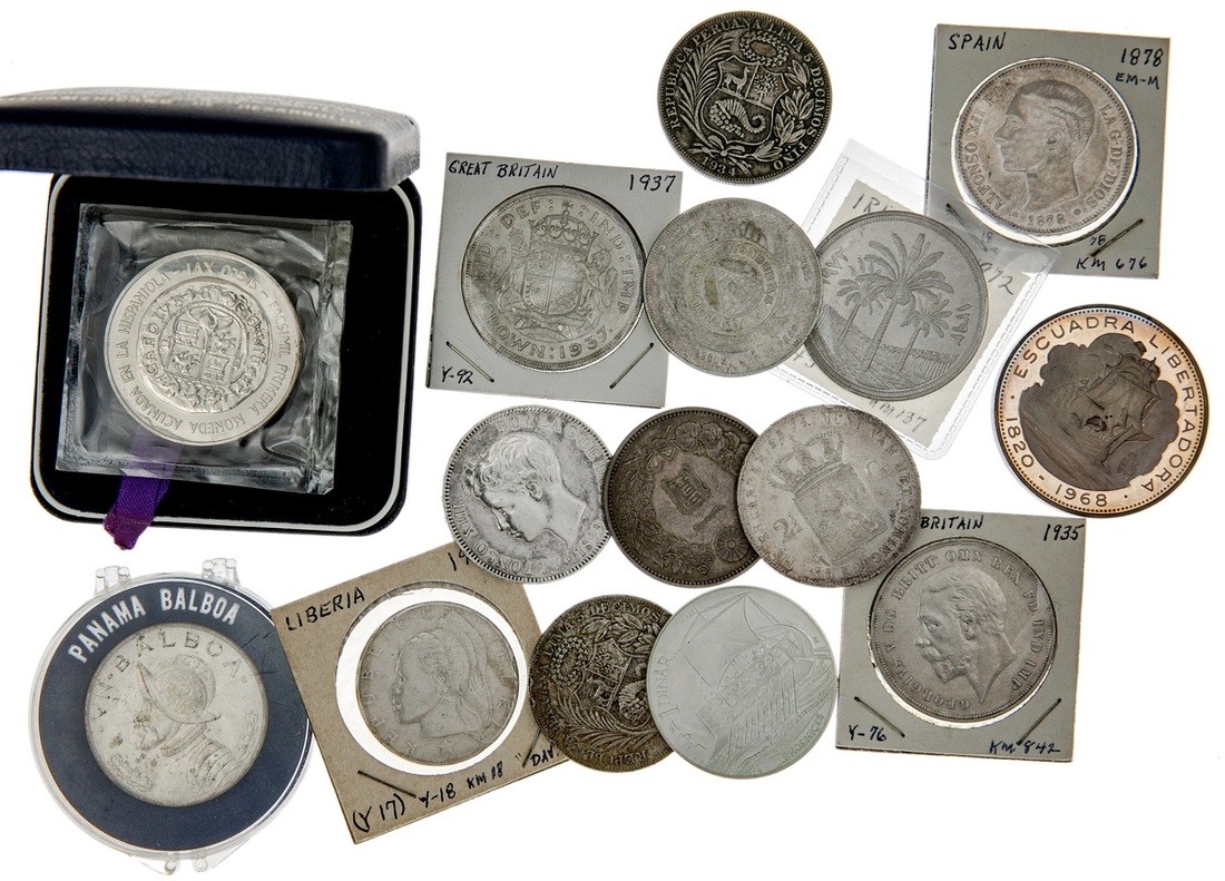 World Crowns. 19th-20th Century. Issues of Spain, Netherlands, Great Britain, Netherlands Antilles, Mexico, Peru, Panama, Chile, Dominican Republic, Honduras, Saudi Arabia, Tunisia, Japan, Egypt, Liberia and others . VF-BU (32)