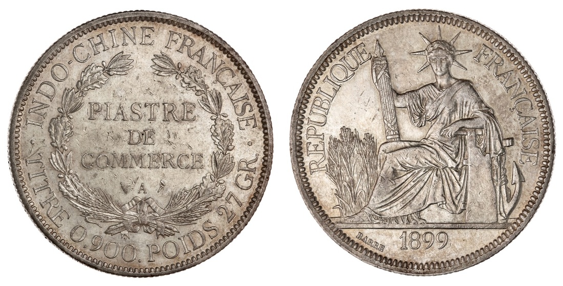 French Indo-China. Piastre, 1899 A. Paris. Liberty seated left, head facing, holding fasces. KM 5a.1. Decent lustre. Good Extremely Fine.