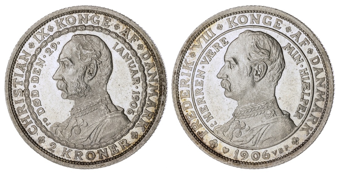 Denmark. Frederik VIII (1906-1912). 2 Kroner. On the Death of Christian IX and Accession of Frederik VIII. KM 803. Brilliant Uncirculated.
