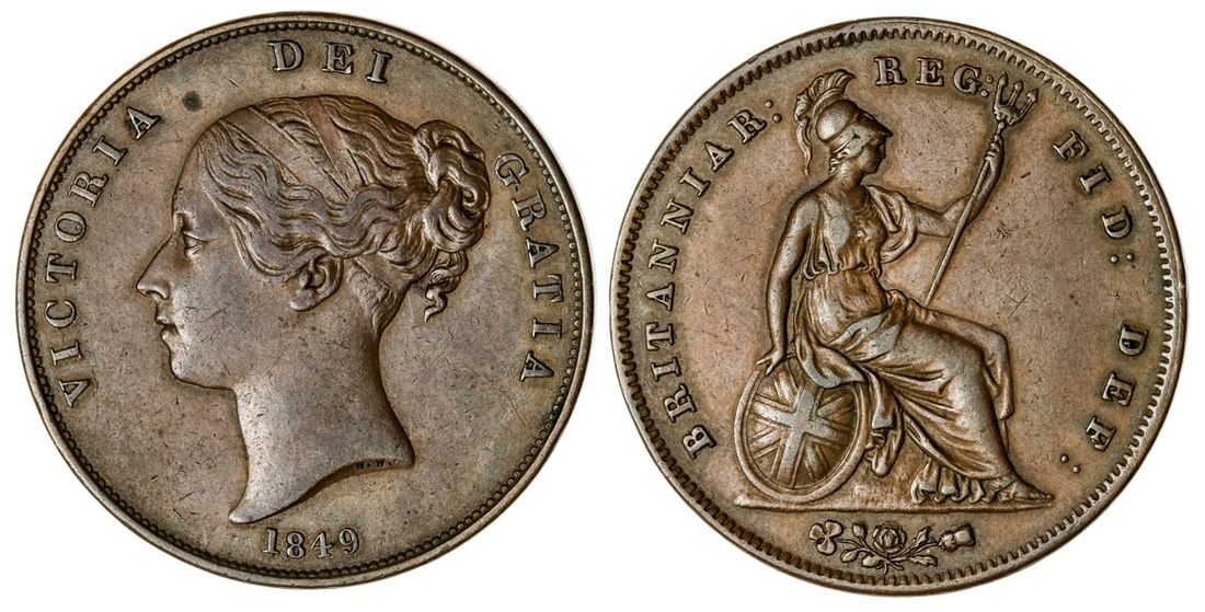 Great Britain. Victoria (1837-1901). Penny, 1849. Young head left. S.3948, KM 739. Rare date. Very Fine.