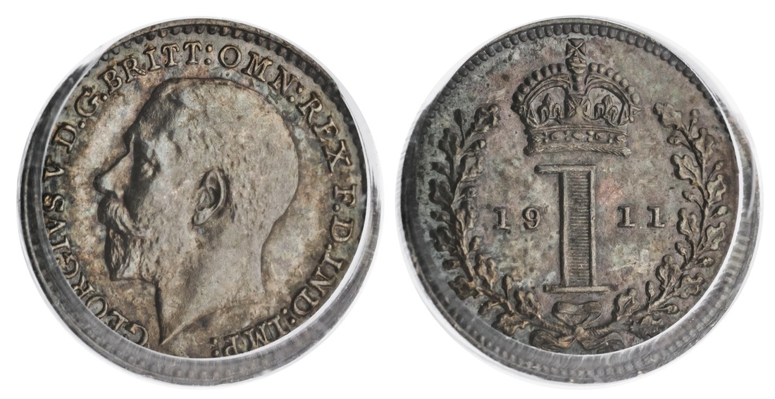 Great Britain. Quartet of Encapsulated Maundy Pennies. Victoria: 1861. NNC MS 62, 1878 NNC MS 64 PL. S.3920; George V. 1911. PCGS PR64, 1922 PCGS MS 64. S.4020, 4031. (4)