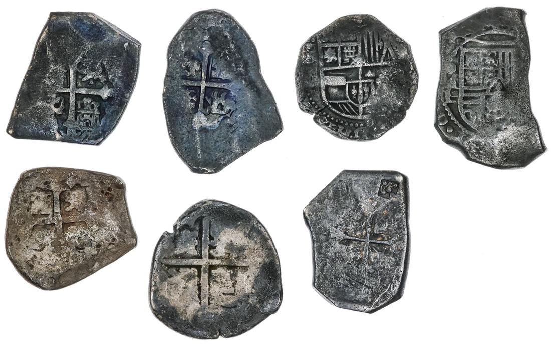 Spanish Colonial. Lot of Sea-Salved Cob 8 Reales (7). 17th-18th Century. One with chopmark, possibly Malay. All dark gray salved surfaces. One only G-VF Details, the others Fine-VF Details. (7)
