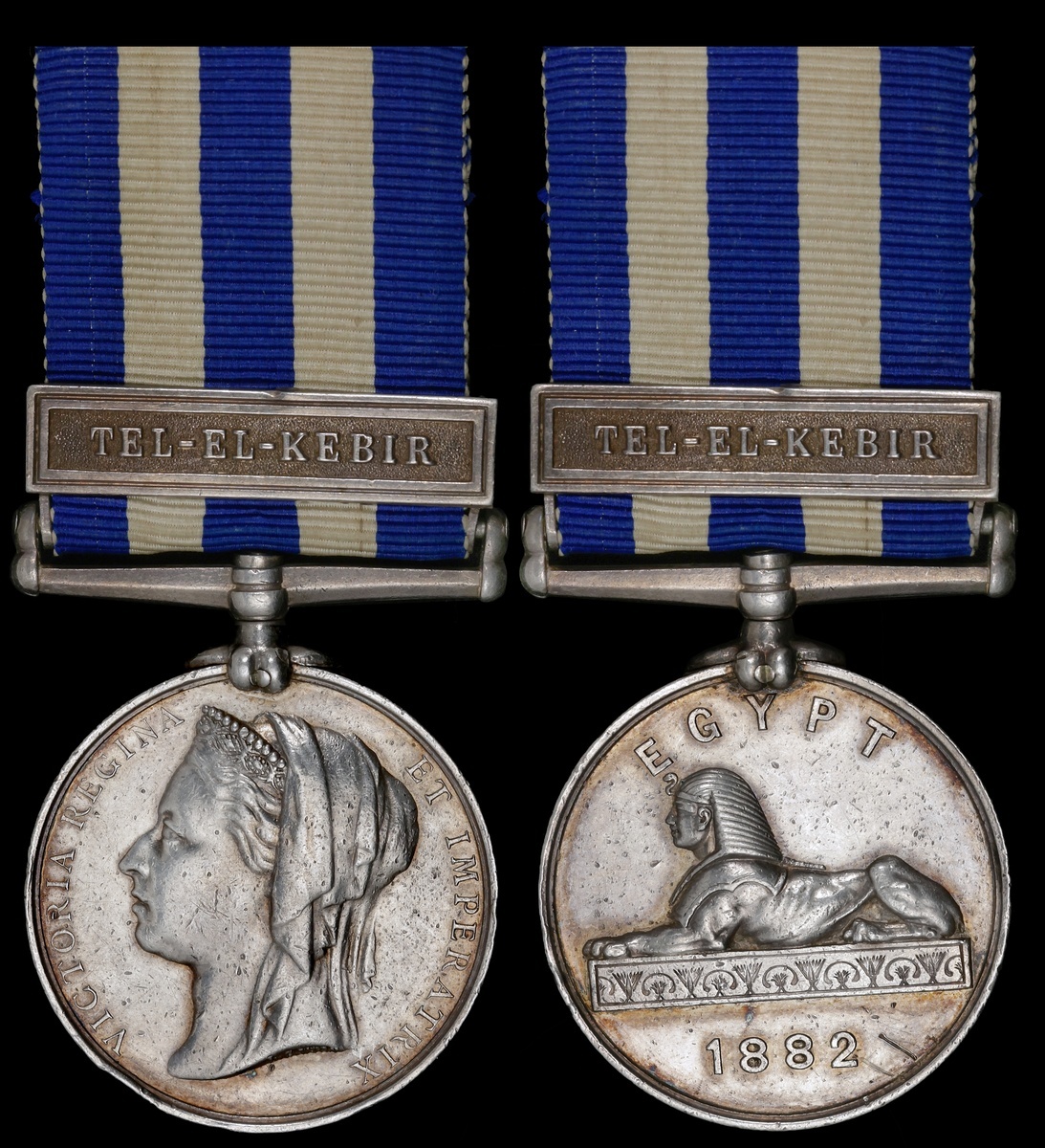 Great Britain. Egypt Medal, 1882-1889. Dated 1882. One clasp: "Tel-el-Kebir" (2466.PTE T.O'KEEFFE.1/R I.FUS.). Engraved. On ribbon. Some contact marks, and rim tap. About Extremely Fine.