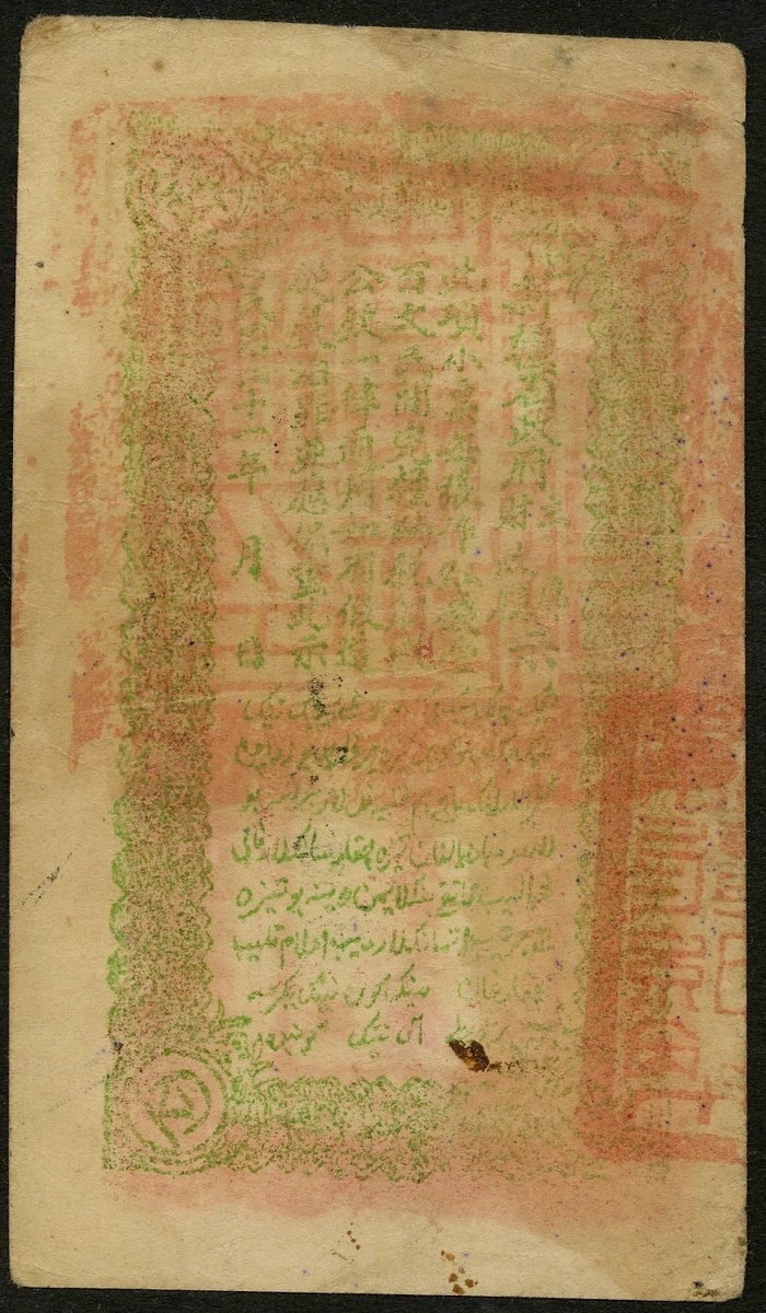 China. Sinkiang (Xinjiang). Sinkiang Provincial Government Finance Department - Treasury. 100 Cash. Year 21 (1932). Dark scarlet; green back. P-S1857. VF.
