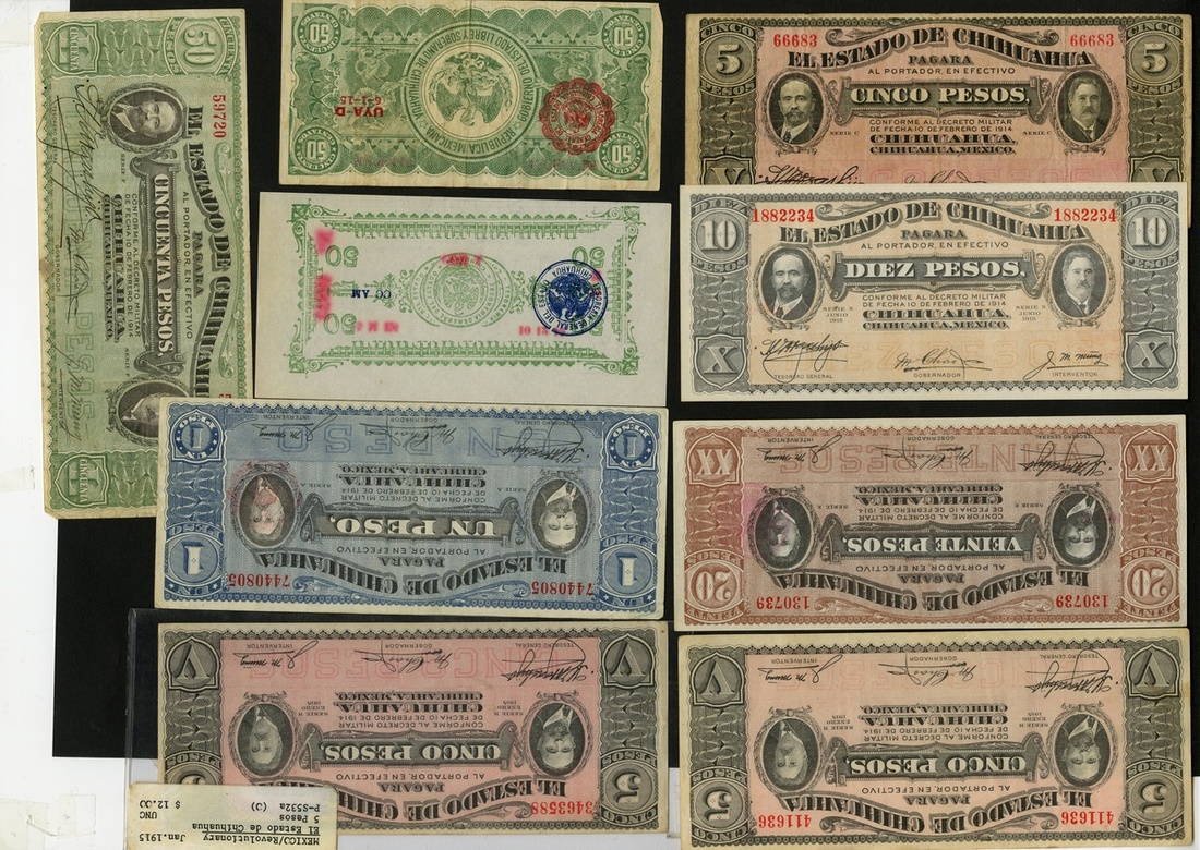 Mexico. Revolutionary. Estado de Chihuahua. Lot. P-S527a, S528 (3), S529 (3), S531, S532a, S532A (5), S533 (2), S534, S535 (3), S536c, S537a, b (11), e (3); and S538a, b (2), c. Fine-Unc. [40]