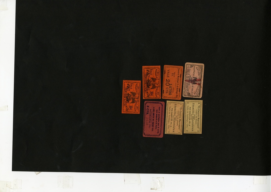 Mexico. Revolutionary. Guanajuato. Municipal and Mercantile issues. Distrito de Celaya. 5 Centavos. Gto.33. Eagle/Cap 'n Rays; Municipio de C. Gonzalez. 10 Centavos (2). Gto.41. Orange-red. Eagle.Tesorería Municipal V. de Santiago. 20 Centavos. Gto.132. Orange pasteboard; Basilio Ramirez, Valle de Santiago. 1nad 3 Centavos. Gto.133, 135. Pale orange and buff pasteboard; La Junta Directivo del Comercio Local, Salamanca. 5 Centavos. Dark rose pasteboard. Gto.118. VF-Unc. [7]