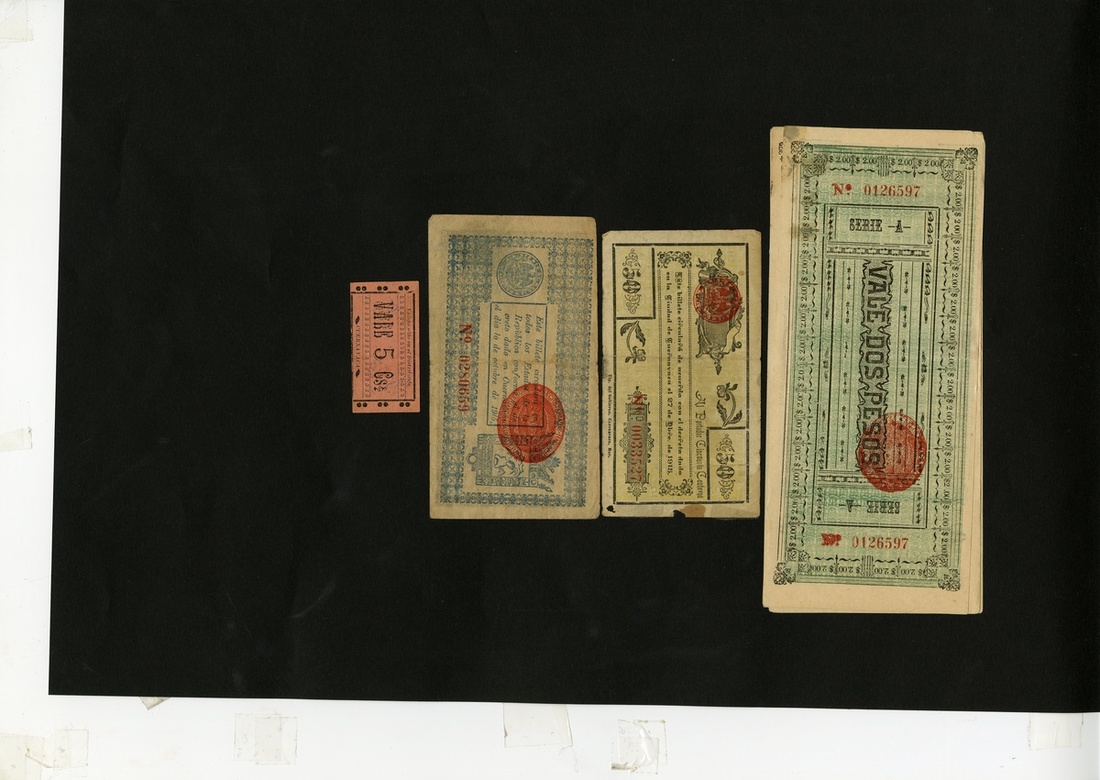 Mexico. Revolutionary. Morelos Lot: Gobierno Convencionalista, Cuernavaca. 5 Centavos. P-S906. VF-EF; Gobierno Convencionalista de México. 5 Pesos. P-S909. Fine; 50 Centavos. P-S910. Nick and tape on left edge. VG2 Pesos (15). P-S912. Fine-EF. [18]