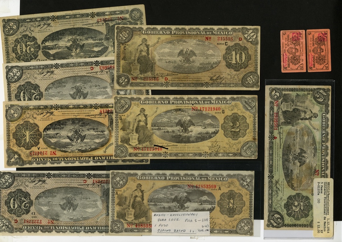 Mexico. Revolutionary. Veracruz. Gobierno Provisional. Lot. Includes: P-S1094 (2), S1099, 1100, 1101 (2), 1102, 1103 (5), 1104 (2), 1105a, 1107a (5), 1110 (4). Fine-AU. [24]