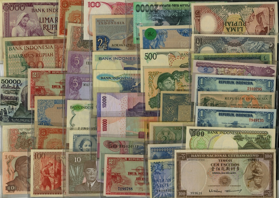 Indonesia. Republik Indonesia-Bank Indonesia. Lot of 1945-2015 issues. Good representation of types. Generally VF-Unc.; also Timor 100 Escudos, 1963 VF-EF. [128]