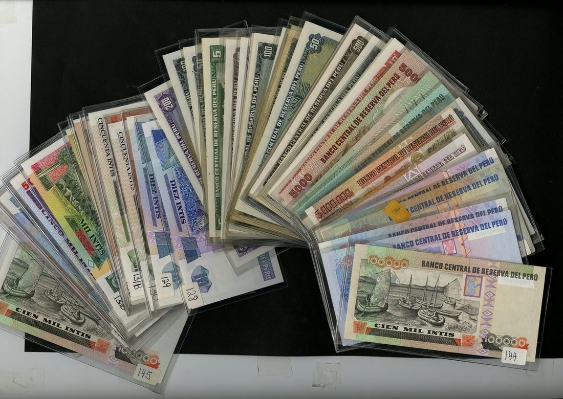 Peru. Banco Central de Reserva. Lot of 1938-2006, including P-87, 91, 105, 111, 162 Unc. Notes generally VF-CU. [78]