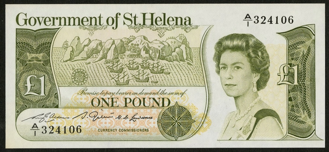 St. Helena. Government of St. Helena. 1 Pound. ND (1976). P-6a. Antique map island view left center, Elizabeth II at right. Uncirculated.