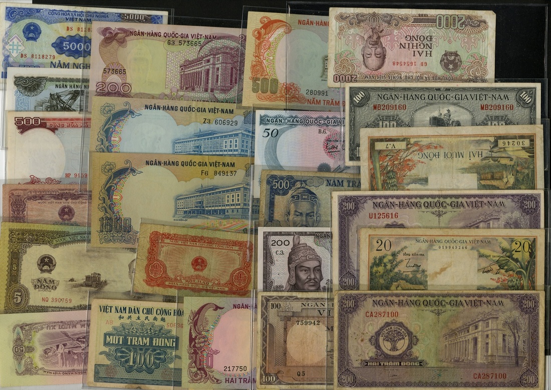 Vietnam. Lot. Includes: Vietnam. P-17 (2), 62b; Democratic Republic. P-68a, 73a, 76, 77; Socialist Republic. P-80; Socialist Republic of Vietnam. P-99a, 102a, 107, 108a; South Vietnam. P-4a (2), 6a, 8a, 9a (2), 18a, 20b, 23a, 25a, 27a, 32a, 33a, 34a (2); and other. Generally Fine-Unc. [28]