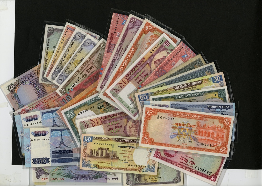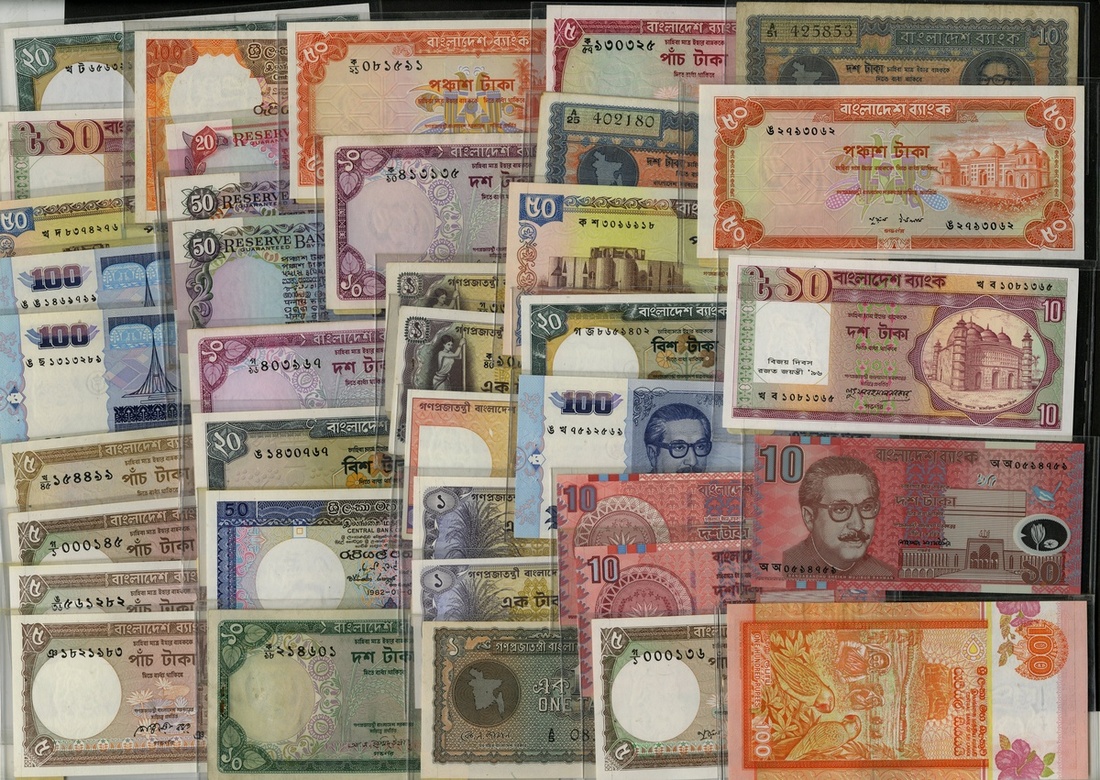 South Asian Lot. Includes: Bangladesh (37) various notes, Pick 4 to 44; India (38) various notes, Pick 28-90; and Sri Lanka (7) 1941-modern. Generally VF-Uncirculated. [82]