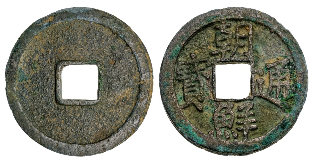 Korea. Sejong (1418-1450). cho son tong bo Cash, cast 1423-1425. 3.64 gms. H.10.3, Schj. 3. Olive blue-green. Very Fine.