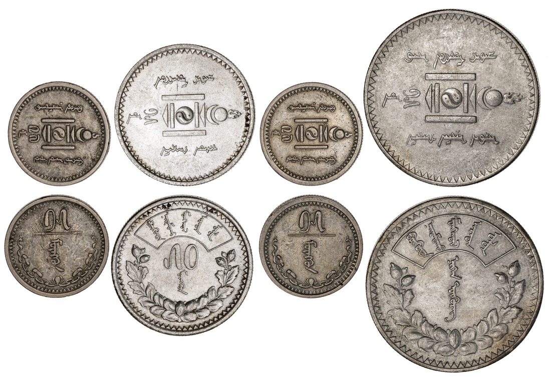 Mongolia. 15 and 50 Mongo, Tughrik year 15 (1925). Soembo Arms. KM 5, 7, 8. VF with hairline scratches, EF, AU-Unc; also 15 Mongo AH year (1937). KM 13. Once wiped, EF. (4)