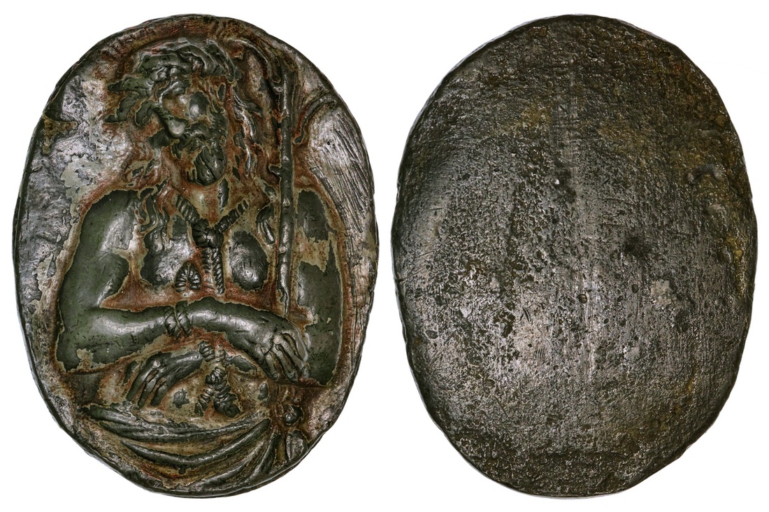 AN OVAL LEAD PLAQUETTE OF CHRIST, MAN OF SORROWS