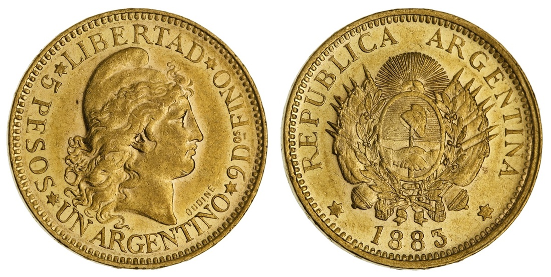 Argentina. Republica. Argentino, 1883. Capped Liberty head right. Fr.14, KM 31.Uncirculated.
